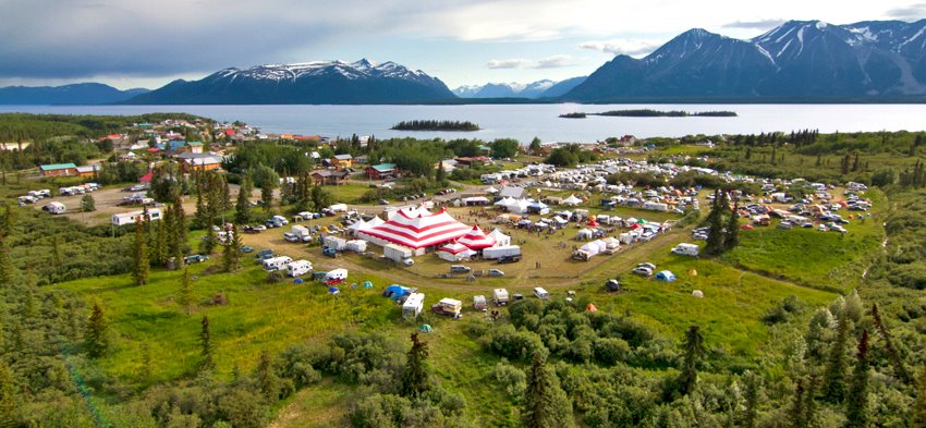 By Friday evening the first band took to the stage at the festival site that had magically appeared. Adjacent to the site was a small sea of RVs, tents, old buses, kids, dogs and an amazing number of people, young, younger and young at heart who had come from all over the north to attend the event. In 1969 I attended my first outdoor music festival in upstate New York. Since then I have seen many variations and have had the opportunity to participate as a musician at many Folk and Blues festivals. I was impressed with the line-up of talented, international musicians who had agreed to come to this remote village on the shores of BC’s largest lake.  The diverse group of northern patrons, most of whom were from the Yukon, included many young folks and young couples with children; middle aged music lovers with older families, some groups including three generations and quite a number of old grey beards and their partners.