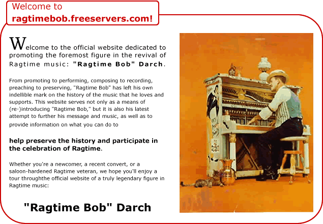 (Bob Darch was a professional player who traveled extensively around the USA and Canada with his very heavy and rare upright 5 pedal Cornish piano, singing and playing barroom songs from the early part of the twentieth century.)