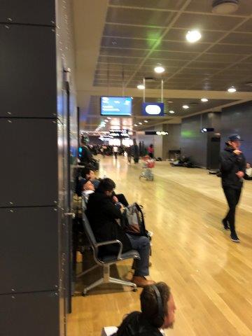 We could see outside. The rain and sleet whipped by horizontally as the entire building shuddered with each fresh gust. I think no one was too upset about the delay considering the view and likely most were a bit relieved that the right decision had been reached regarding the grounding of all flights. The 90-minute stopover turned into about 6 hours and in the meantime all the coffee shops did very well, new friends were made, romances blossomed, crying babies were soothed and generally all was well in the land of ice.