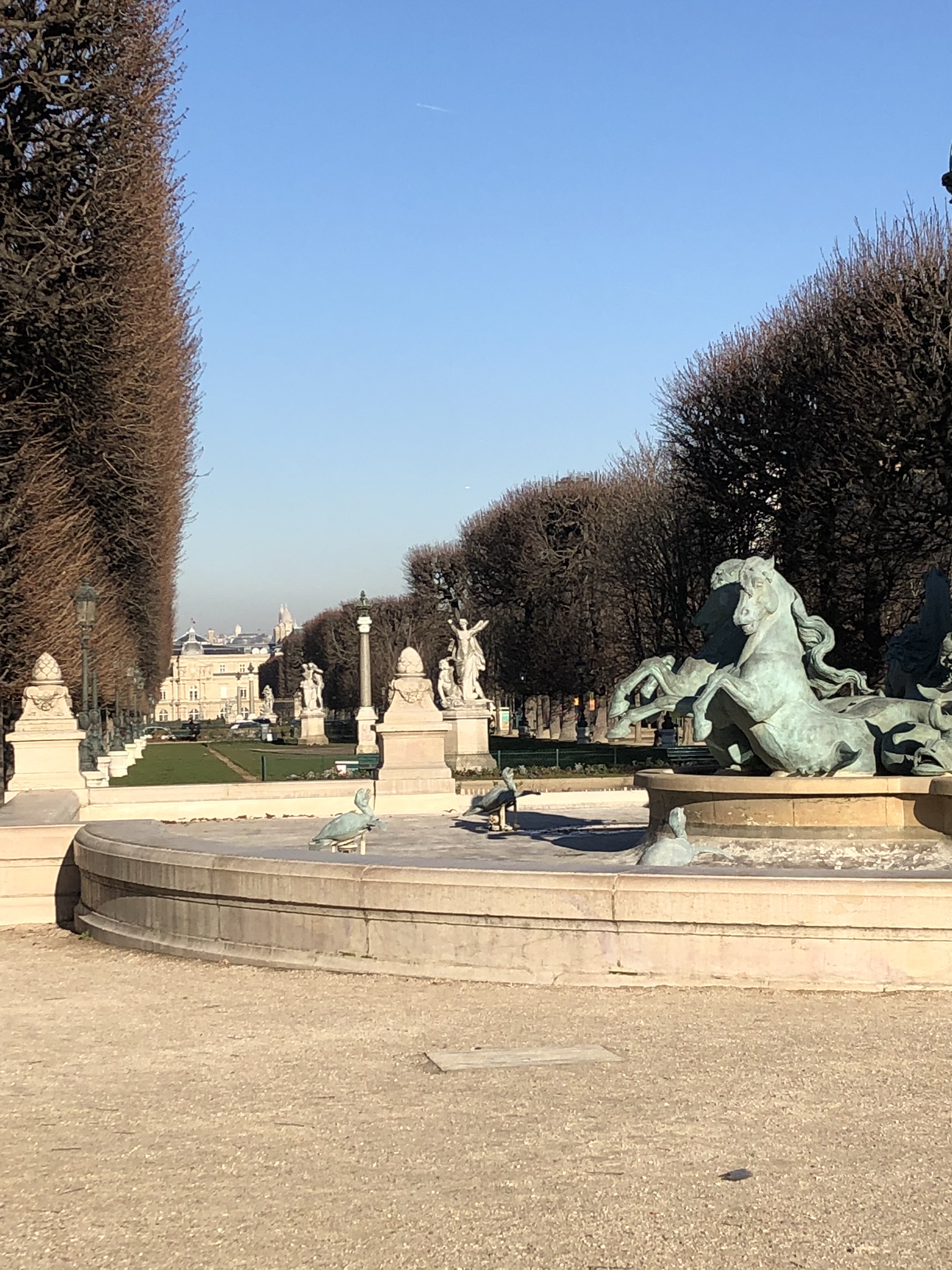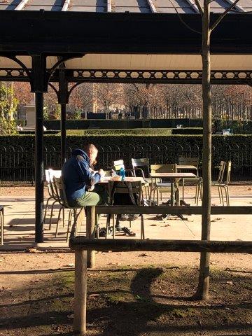 Because we were visiting Paris in the winter absent were the multitudes of foreign visitors and there were virtually no long ques at any of the attractions. We were blessed with sunshine and quite bearable temperatures for 5 out of 8 days. We did however have a taste of nastiness on one Saturday when the cold north wind blew in accompanied by a slow, cold drizzle, the kind that seeps in right to the bones. We took the day off and enjoyed a few warming beverages in a small café that had a fireplace where we settled in for a few hours with our books and our penchant for people watching. There also may have been wine, I can’t recall.