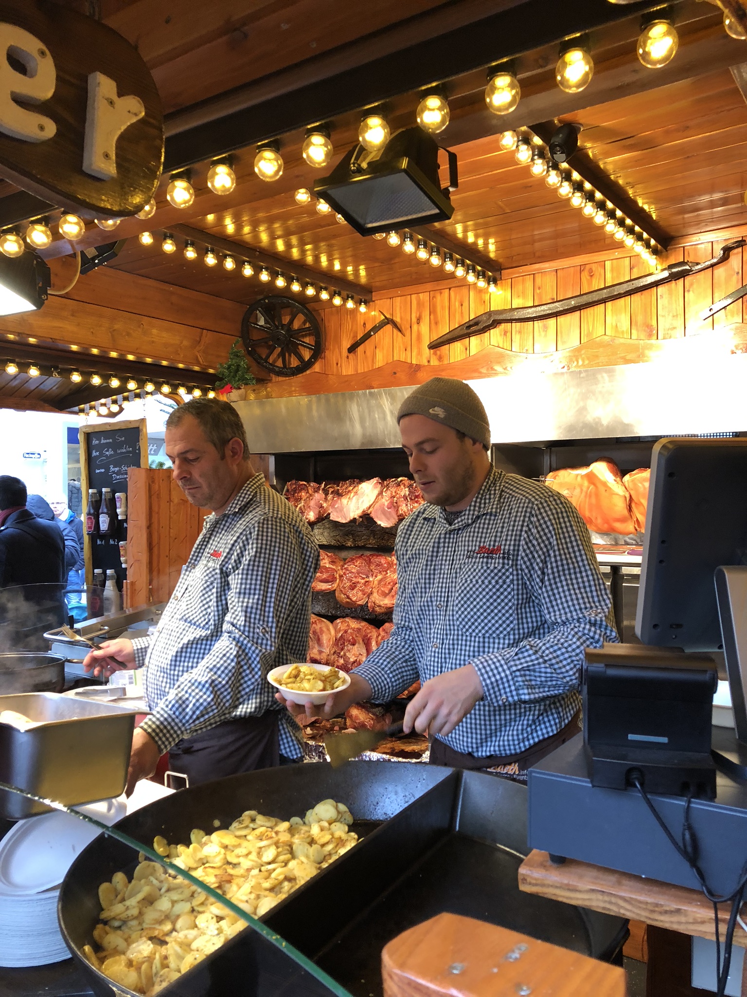 The Germans are big on meat and potatoes and serve it up for a few euros.